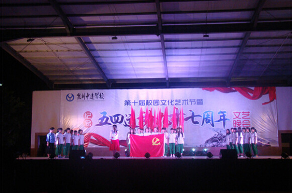 5月15日傍晚,天朗氣清,校內音樂律動,由校團委主辦的第十屆校園文化藝術節暨紀念五四運動97周年文藝晚會在學校后操場火熱開演,學校校長黃金盾、辦公室主任王重尚等學校行政領導和全體學生觀看了此次演出。 晚會在大型古箏聲合奏中拉開帷幕,動感十足的架子鼓《逆戰》盡顯青春活力。詩朗誦《青春的誓言》帶領大家再憶五四情懷,引起學生們的共鳴與思考,我們應該敬畏與尊重歷史。相聲《文明風波》和小品《逝愛》用貼近同學生活的角度出發,展示了現在中學生生活和思想的狀況,引人深思。服裝秀《Love Lockdown》,婚紗與西裝的交錯,帶來一場視覺的饕餮盛宴。舞蹈《茉莉花》,小小的身影展現了茉莉花的活力。散打班的武術表演,用他們干凈利落的武姿,點燃了同學們的熱血。最后,晚會在舞蹈社的舞蹈《Hate》中落下帷幕。 此次校園藝術節充分展示中遠學校健康活潑、積極向上、燦爛多姿的校園文化氛圍,豐富了學生的課余生活,陶冶了學生的藝術情操,為學校各個社團提供了一個施展才華的舞臺。