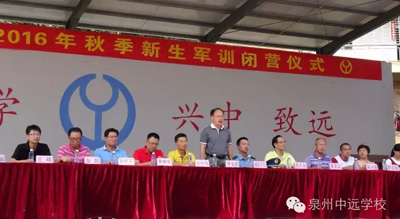 8月29日下午,泉州中遠(yuǎn)學(xué)校舉行2016年秋季新生入學(xué)軍訓(xùn)閉營(yíng)儀式。在同學(xué)們嘹亮的口號(hào)聲中,為期五天的入學(xué)軍訓(xùn)畫(huà)上了圓滿句號(hào)。