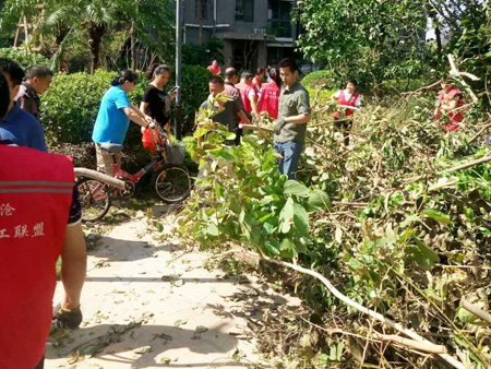 天微亮,三遠(yuǎn)物業(yè)團(tuán)隊(duì)隨即埋頭投入緊張的災(zāi)后恢復(fù)工作中。緊急協(xié)調(diào)檢查維修事宜,如電梯、智能、綠化等,并組織自身力量清洗地下車庫,同時(shí)組織物業(yè)人員協(xié)調(diào)小區(qū)綠化養(yǎng)護(hù)單位鋸樹枝,把小區(qū)所有道路打通,讓方便小區(qū)居民進(jìn)出,幫助業(yè)主送水到家直至供水回復(fù),并及時(shí)將災(zāi)后恢復(fù)工作拍照存檔,通過微信群像業(yè)主告知進(jìn)度。值得一提的是,小區(qū)的業(yè)主在看到臺(tái)風(fēng)的破壞情況時(shí),自發(fā)加入我們,一起為家園的重建工作貢獻(xiàn)一份力量。