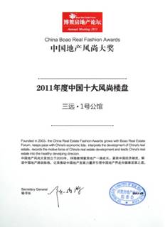 17日晚的2011中國地產(chǎn)風(fēng)尚盛典上,三遠(yuǎn)集團2011年度實力巨獻--廈門三遠(yuǎn)一號公館更是憑借高端的社區(qū)品質(zhì)、高尚的人居藝術(shù),入圍“中國地產(chǎn)風(fēng)尚大獎”,摘得“2011年度中國十大風(fēng)尚樓盤”獎項。