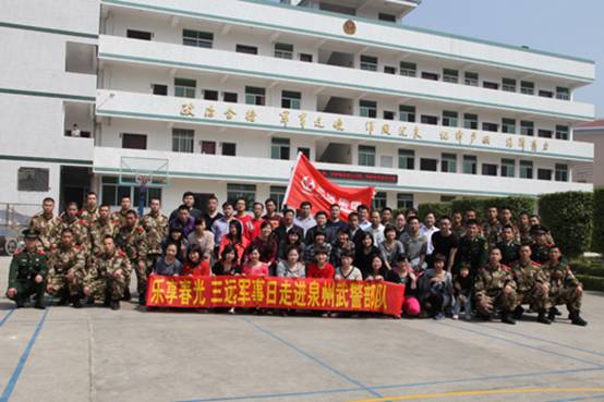 三遠地產(chǎn)集團與泉州武警支隊官兵合影留念 2012年3月17日上午,在春暖花開時節(jié),三遠地產(chǎn)集團利用周末時間,組織集團總部員工近50人,走進泉州武警支隊開展“三遠軍事日”活動,參觀、體驗部隊生活,學(xué)習(xí)部隊紀律嚴明、做事嚴謹、溝通高效的工作作風(fēng),加強隊伍紀律,提高工作效率。 集團員工接受武警隊員軍事訓(xùn)練 集團員工參與部隊內(nèi)務(wù)互動 上午9時許,在部隊領(lǐng)導(dǎo)的帶領(lǐng)下,集團員工參觀了部隊內(nèi)務(wù)管理及工作流程系統(tǒng),觀看了部隊官兵的日常軍事操練演示,并興致勃勃地登上哨墻通道,參觀監(jiān)獄設(shè)施,詳細了解了部隊的工作任務(wù)及日常工作內(nèi)容。大家對部隊官兵科學(xué)高效、一絲不茍的工作態(tài)度十分贊許。 觀看武警隊員防恐軍事演練 參觀過后,集團邀請了2名優(yōu)秀標兵對參加活動的全體三遠員工進行了隊列訓(xùn)練。炎炎烈日下,大家筆直站立、一絲不茍,練習(xí)停止間轉(zhuǎn)法等基本軍訓(xùn)內(nèi)容。中午,集團全體員工與武警部隊官兵一起,在部隊食堂進行了會餐聯(lián)誼,興高采烈地體驗了一次軍營生活。 觀看武警隊員日常隊列操練 通過此次軍事日活動,三遠地產(chǎn)集團員工不僅增長了見識,學(xué)到了知識,更與泉州武警支隊加深了溝通了解,建立起了長期固定的互訪關(guān)系,極大地促進雙方友誼的長遠發(fā)展。